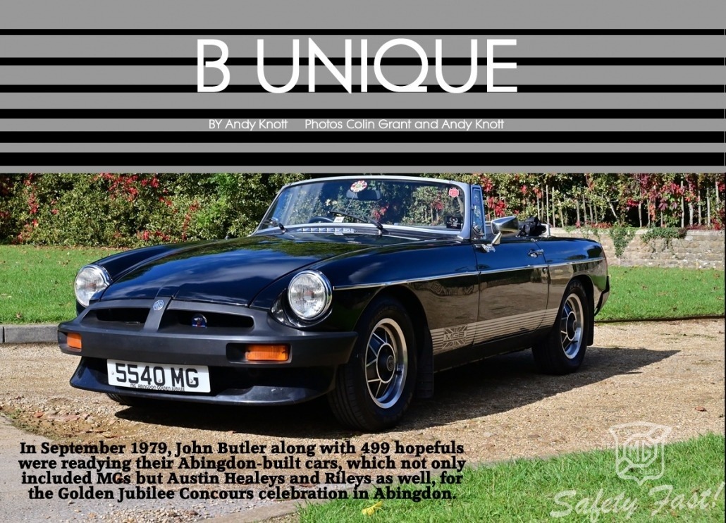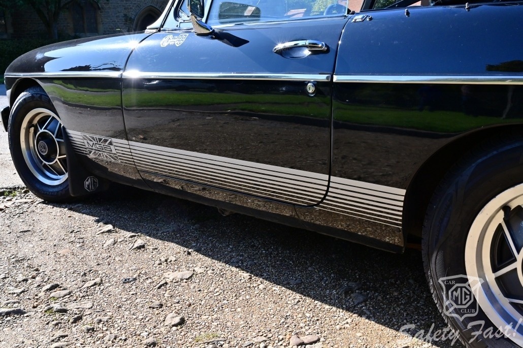 The USA special edition was limited to 1,000 cars built in 1979. They were all black roadsters with alloy wheels, side stripes, chin spoiler, boot rack and with commemorative plaque on the dashboard. They were built to celebrate 30 years of MG sports cars being sold in the USA.