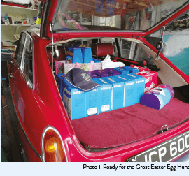 You remember from April’s notes that Peter Nixon from Tyne Tees Centre was searching for parts for his hardtop and found a possible contact in the USA. He tells me that he ordered the retaining strip that he needed and that it has now turned up and is a perfect fit! That’s good to know, then. It would have been nice to get my BGT out this past couple of weeks, but, as my photograph shows, it has been used to store Easter Eggs (nice and cool in the garage and out of the sun). These are prizes for a Great Easter Egg Hunt organised annually on Portreath Beach in Cornwall for under-5s and over-5s…by Camborne/Redruth Lions Club. But how many Eggs are there in the Car? Send me an email with your guess and we will pick out a winner and organise a prize from the Register regalia. Cut off May 15. Last year there were more than 500 children, and even more enthusiastic parents, digging frantically for the buried treasure. The beach looked like a minefield afterwards. Hint…I don’t have all the prizes…