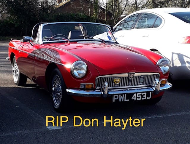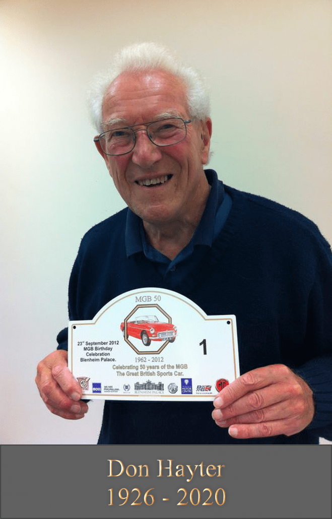 The MG Car Club and the MGB Register extend their sincere condolences to Don Hayter’s friends and family and especially to his wife Mary.