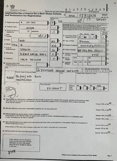 Please Note: David made his previous owner enquiry to the DVLA in February 2008. This was before GDPR kicked in and the DVLA no longer supply this information unless it is for legal purposes.