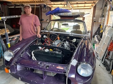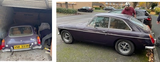 In discussion with my wife, by this time we had been married 43 years, I arranged to view the car in Ware, Herts. Although it had not run for a long time, it had been kept in a dry garage so meant the bodywork and sub-frame were in great condition for a 50-year-old car. The usual areas and spots that are prone to rust and rot on a MGB were surprisingly sound, and as the asking price was low enough, we agreed to buy the car back in October 2023!