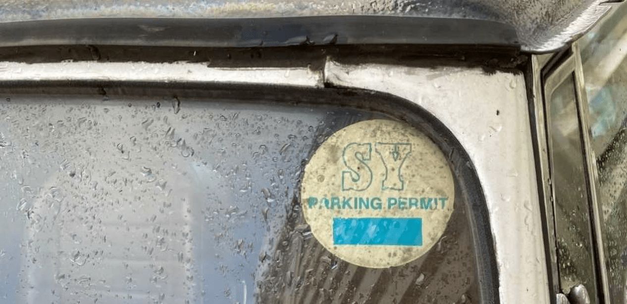 Can anyone identify this front window sticker?: this has ‘SY Parking Permit’ on the window. We are guessing this was dad’s IBM Sudbury Towers parking sticker.