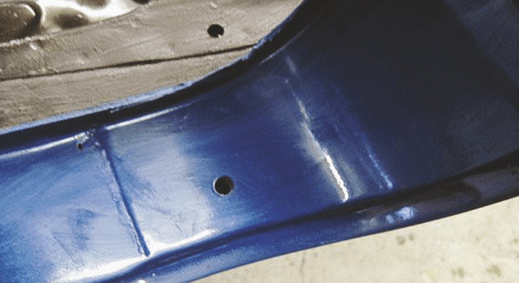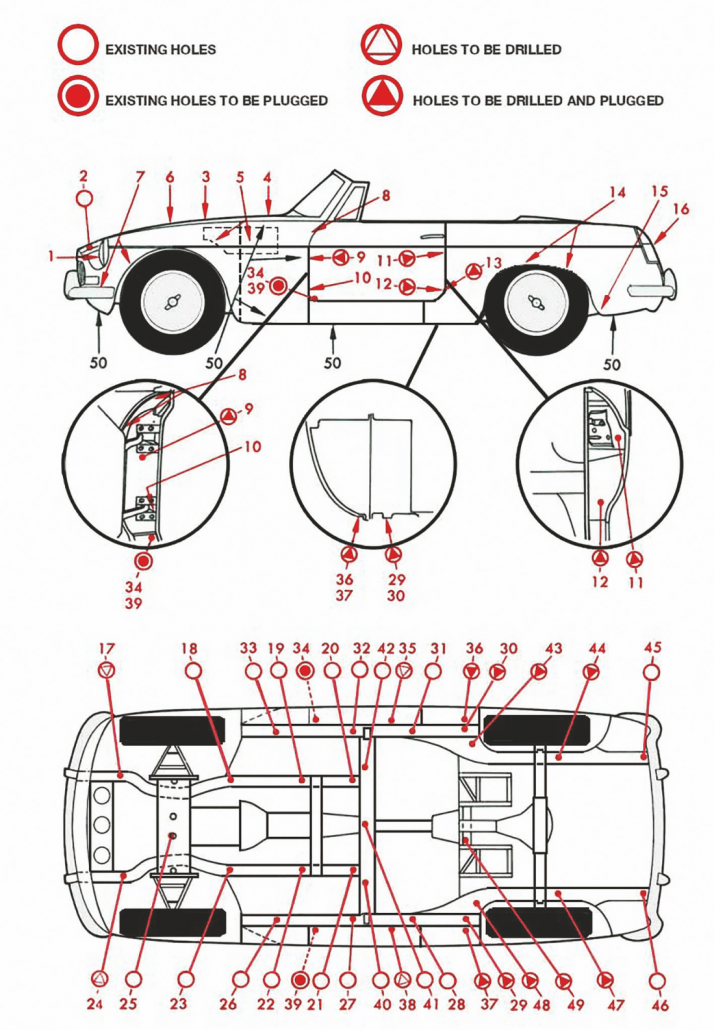 - Behind the seats the inner sill widens out to link up with the vertical panel across the front of the battery compartment. Carefully lift and turn back the rubber carpet to expose this area and now there is a double row of spot weld marks visible, you will need to drill one hole on each side of these welds because there appears to be a vertical web dividing the box section into two parts.