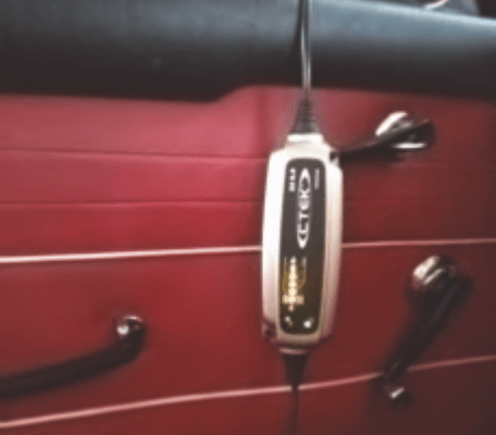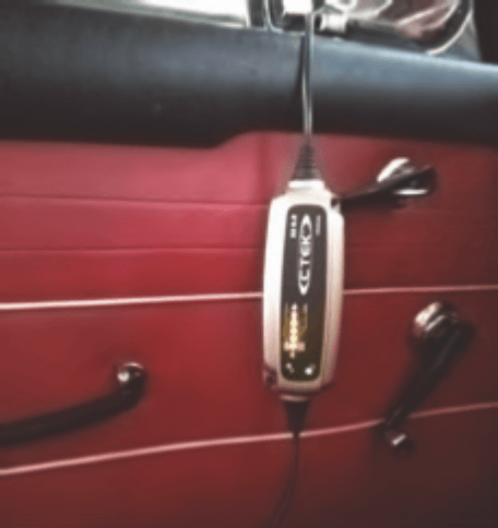 Thinking of winter preparations, I place a 60W tube heater, as used in clothes closets, under the sump and cover the car with a purpose made cover. It just keeps the chill off and the damp out. This year, though, my insurers, Heritage, kindly offered tracking devices to their customers and so mine is fitted in the car and wired permanently to the battery. When not actually working, my battery is isolated from the car electrics with a simple switch. It protects from any wiring problems and adds a degree of security, so the tracker needs wiring directly to the battery terminals. So, now we have a continuous drain on the battery and the car is, effectively, in storage. To maintain battery condition I use a CTEK charger/conditioner attached to the battery directly and, as this is what is called a smart meter, this conditions the battery whilst allowing the tracker to function and all in isolation from the rest of the vehicle electrical systems.