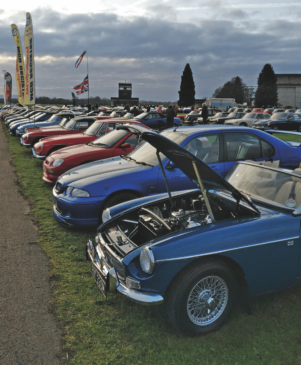 Christmas has come and gone, the Boxing Day Run was great fun in the cold, so now it’s some time before the MGB can be used again. Oh no, it’s not – the first Bicester Heritage Scramble was on January 6. “ Let’s go,” I said to friend Tony. So on a cold winter morning I got the Boneshaker out and set out on the 50-mile drive to this excellent event. There was a really old-fashioned queue when we arrived, full of a wide variety of classic cars waiting to get in. When we got into the massive site we quickly found the MG parking area, organised for the MGF Register by Ian Worzel Wright, there were in the region of 70 other MGs parked up.