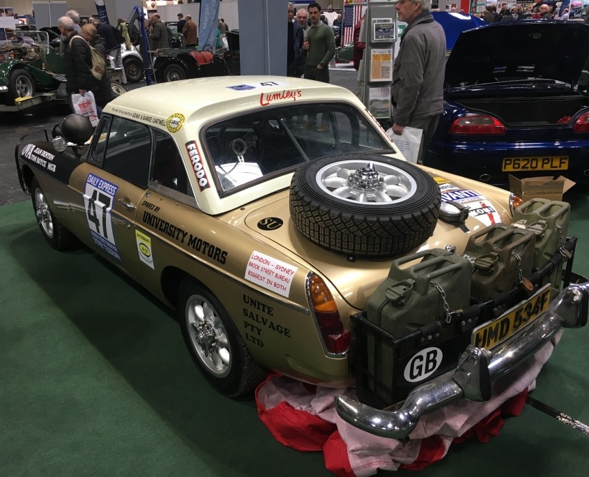 The car was built by Tom Denton, Tom Boyce and Peter et al according to the legend on the hardtop. The et al included Pete’s then girlfriend, now wife, Sharon who made a lot of the modifications to the interior to make it more habitable (slightly) for 10000 mile rally. The Marathon Team had asked Pete and Sharon to carry out the unveiling of the restored car at the Restoration Show the next day – this was an opportunity to spend some time with them both.