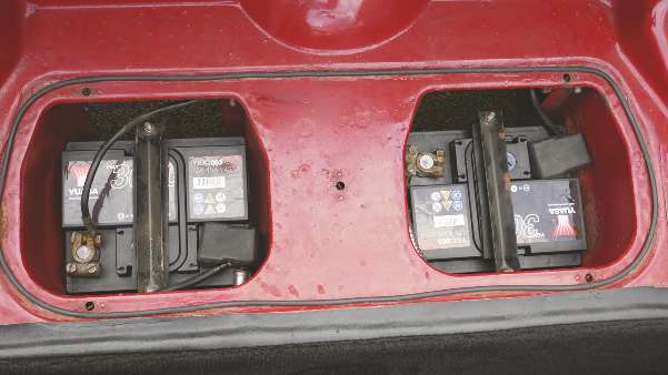 4. You can replace the twin 6-volt batteries with a pair of 12-volt batteries rewired in parallel. This is quite simple to do and then you double the amperage turning the engine over. I fitted the largest that would go in the cradles, although it required cutting off the flanges on the bottom of the cases and redesigning the retaining brackets to go over the batteries as seen in the photos. I added tough terminal covers as well, as an added safety measure.